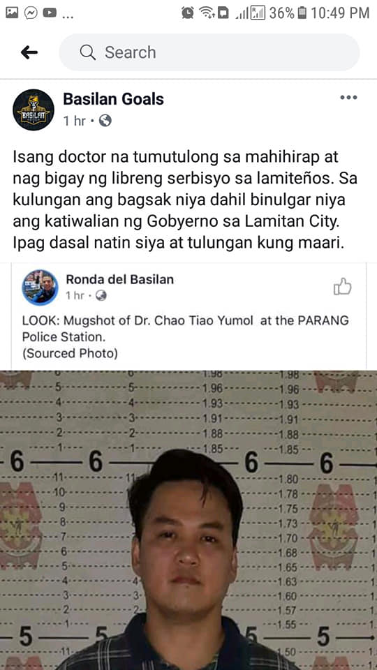 Ateneo SHOOTING suspect Dr. Chao Tiao Yumol is an anti-crime and anti drugs crusader in Lapitan, Basilan